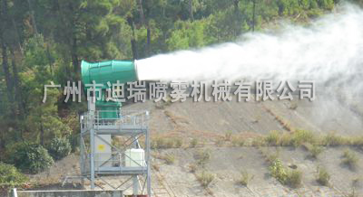 高塔式噴霧風(fēng)炮一般安裝在混凝土澆筑、鋼架結(jié)構(gòu)搭建的平臺(tái)上,依靠噴霧風(fēng)炮射程遠(yuǎn),水平旋轉(zhuǎn)角度大進(jìn)行大面積噴霧除塵。
